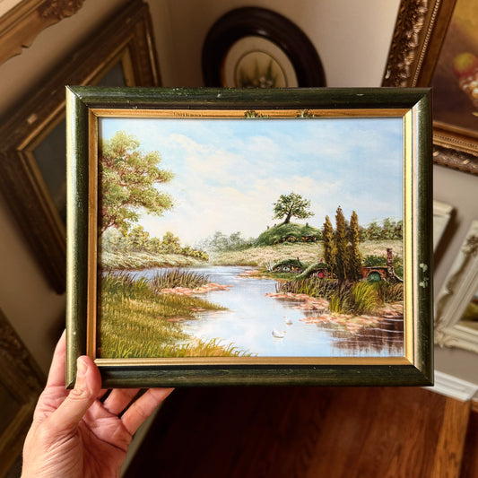 A Comfortable Neighbourhood - original upcycled vintage painting