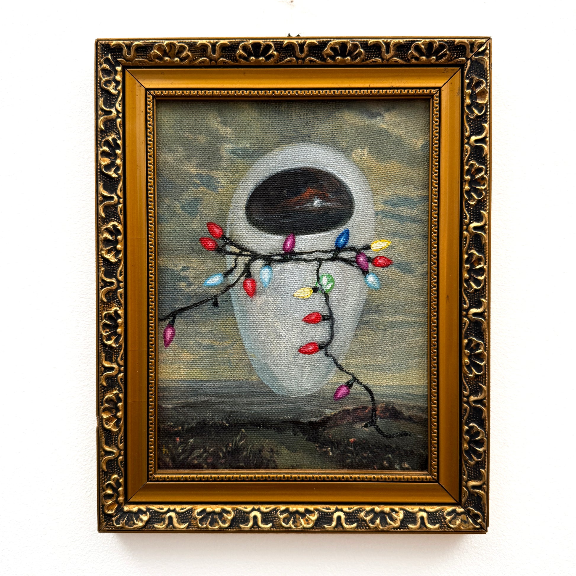 20.5 x 15.3 cm (6x8 inch) painting on lithograph print on cardboard