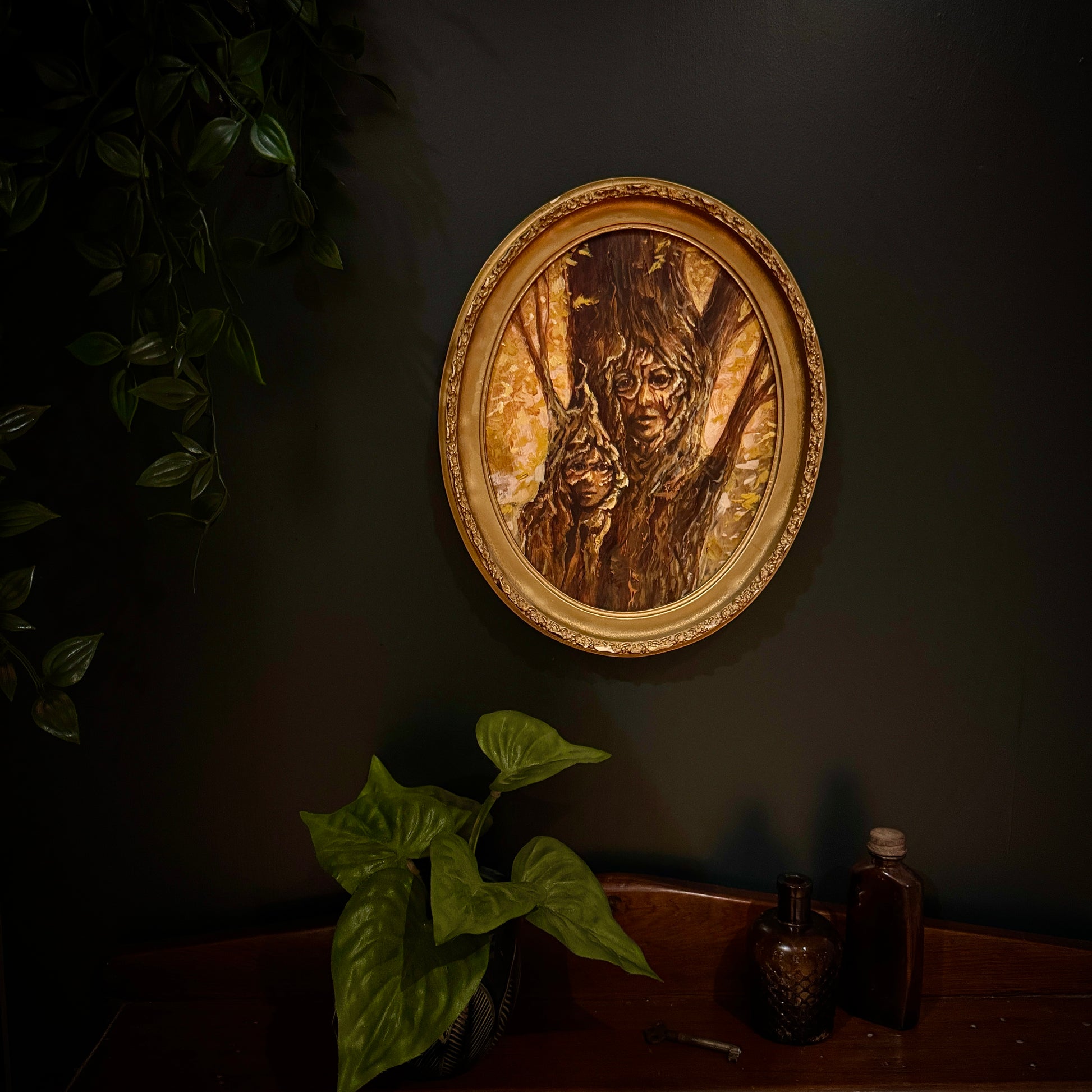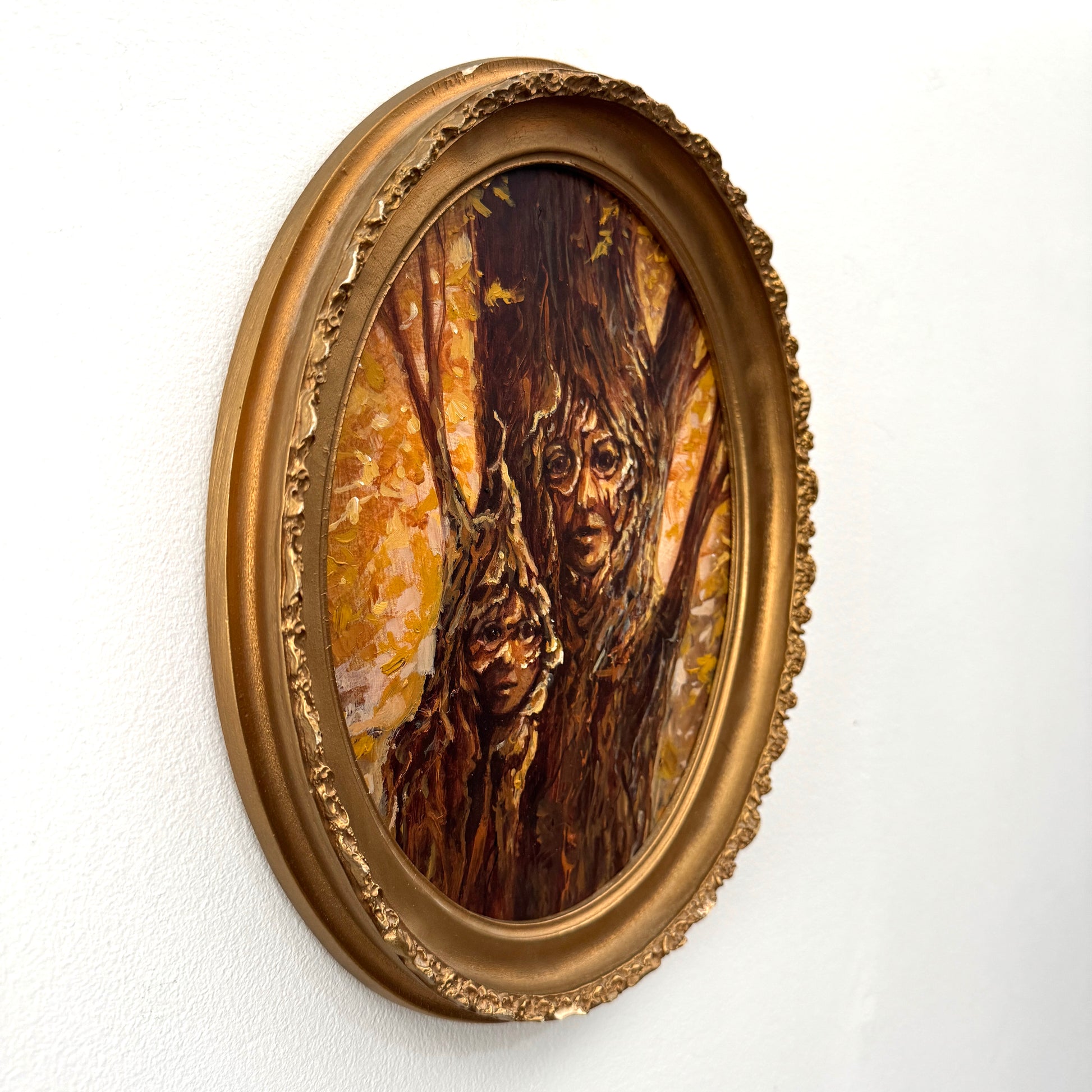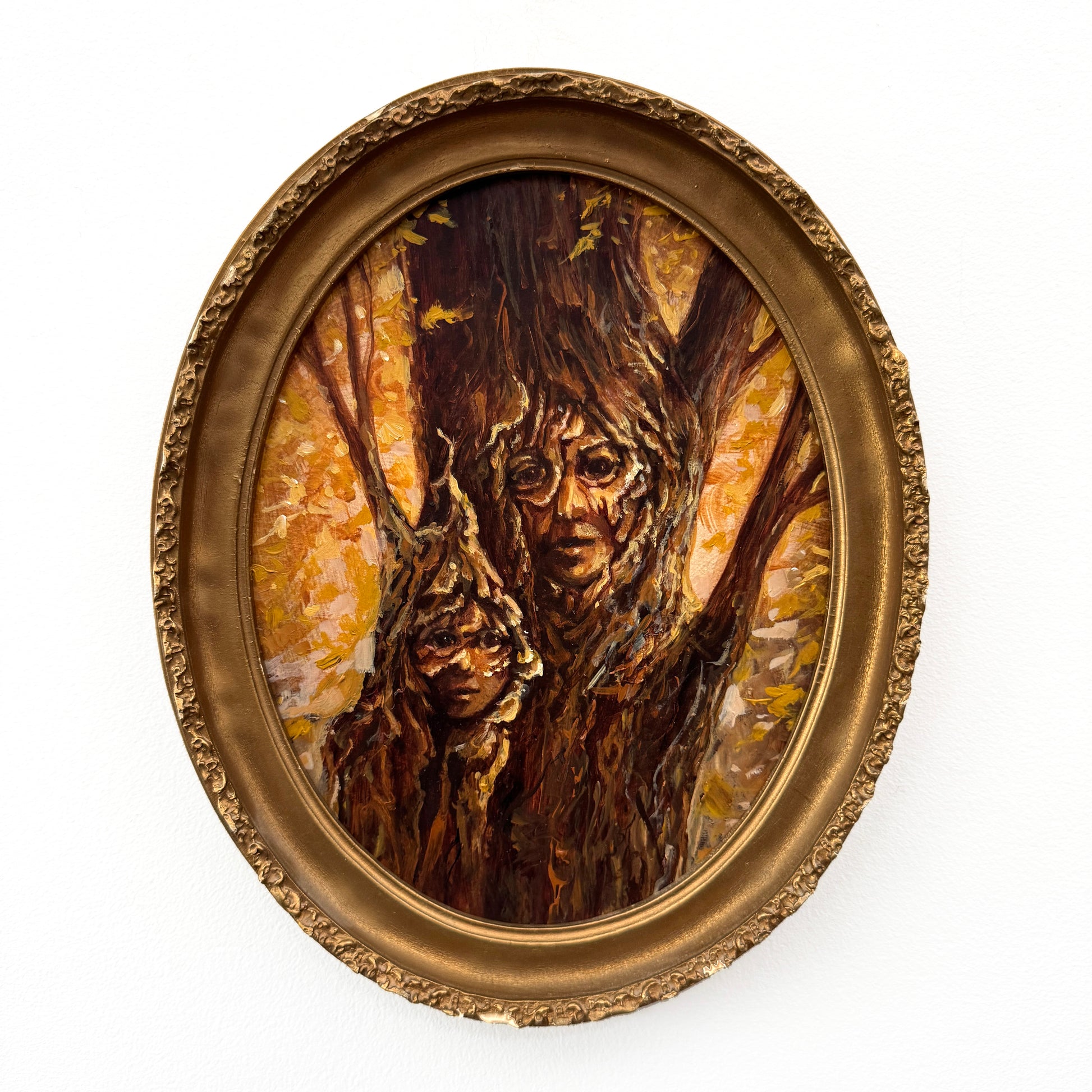 Portrait of Mother & Daughter Huorn - original upcycled vintage painting