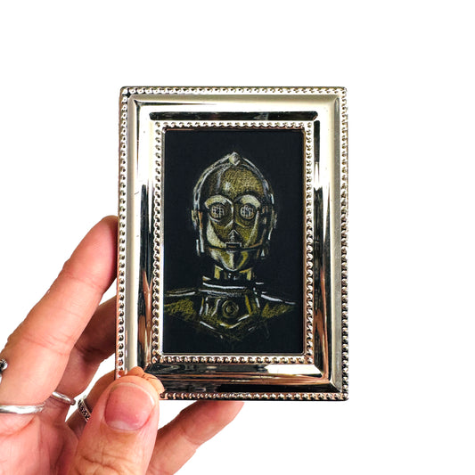 Portrait of a Droid : K-2SO, watercolour painting in vintage domed glass metal frame