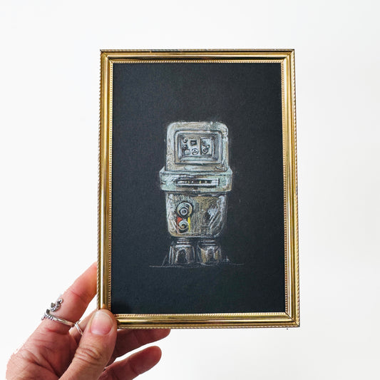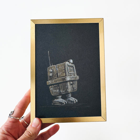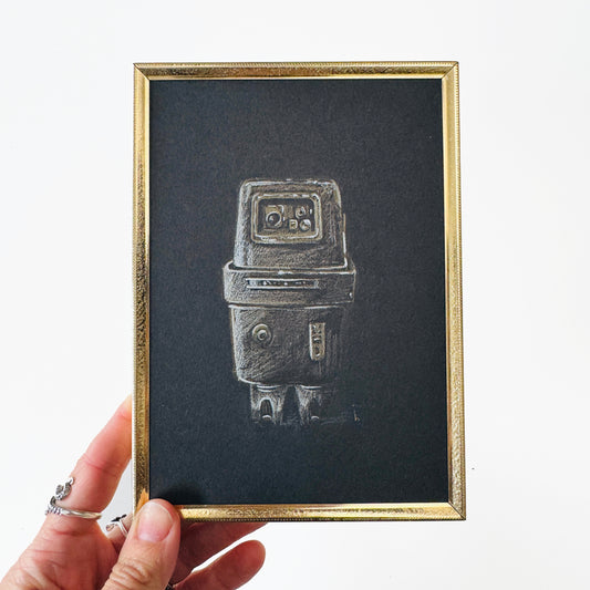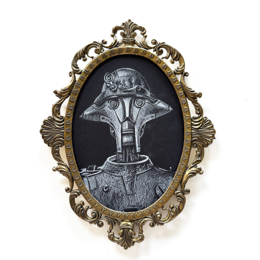 Portrait of a Droid : D-um Droid, pencil drawing on antique paper, in vintage frame