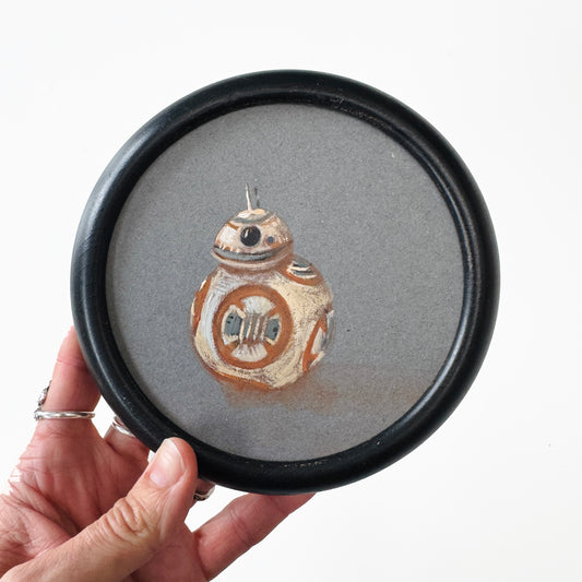 Portrait of a Droid : IG11, watercolour painting in vintage domed glass metal frame