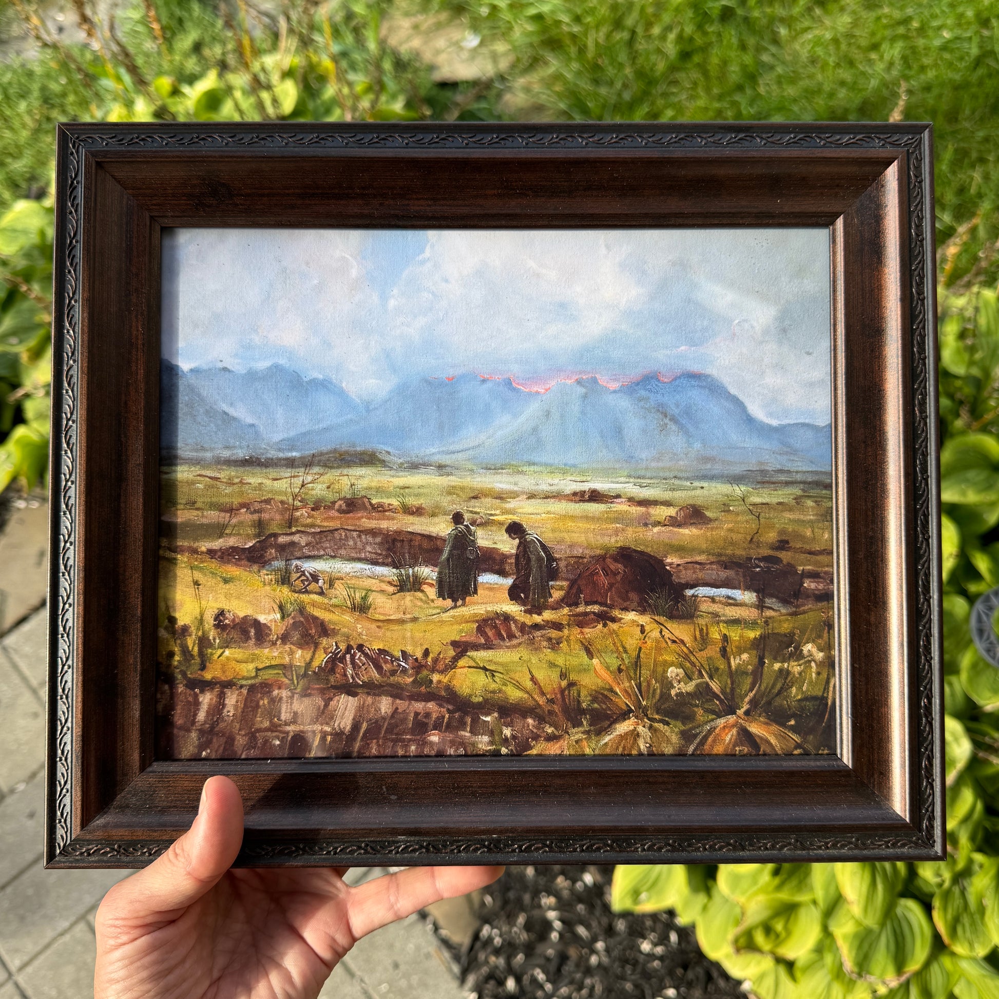 I absolutely loved immersing myself in middle earth vibes while painting this piece. I had found this dreary painting at a local antique barn and while it isn’t the retro style I usually alter, it right away made me think of the Dead Marshes and I wanted to alter it for myself. On its own it was beautifully done, so I wanted to work with what was there and complement it with subtle additions.