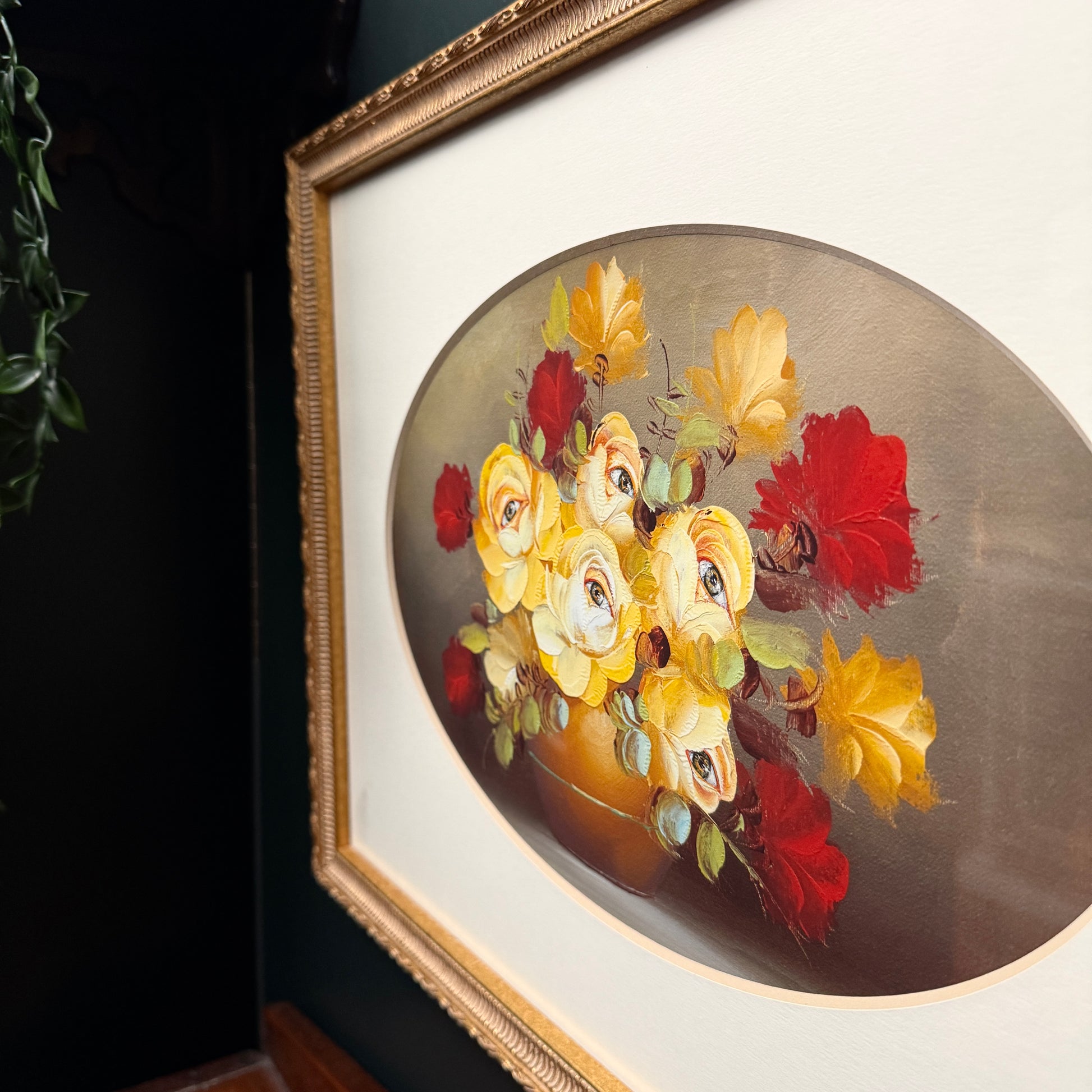 Needless to say... my daughter WAS surprised, and NOT impressed by the creepy flowers staring back at her! This painting was in our hallway, and she said it "watched her" as she came down the stairs for breakfast!