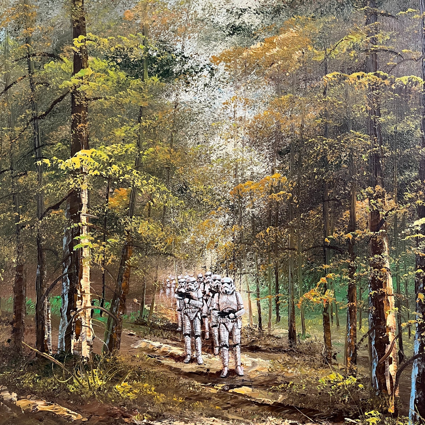 This alteration started with walkers steadily journeying downriver in the cool mountain waters... and by the time I finished painting, a group of stormtroopers had walked down the path on their search for rebel scum.
