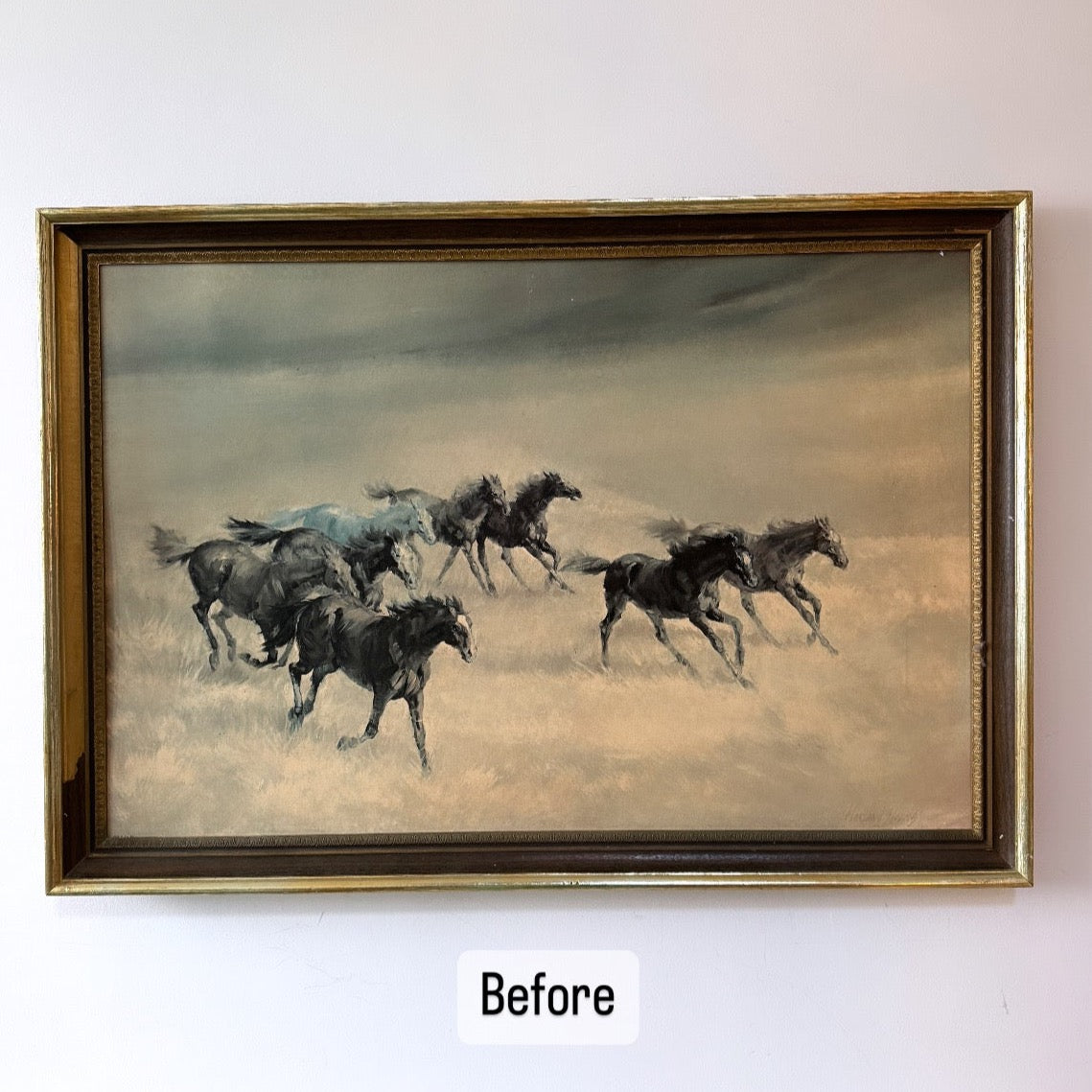 This alteration is on a vintage print of the painting titled “Wild & Free Horses” by American artist Harland Young (1924 - 2015.)