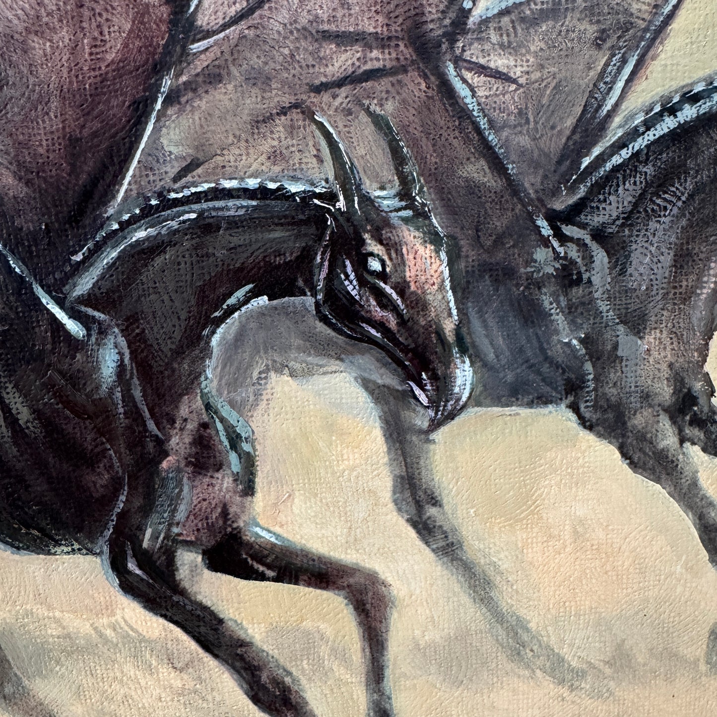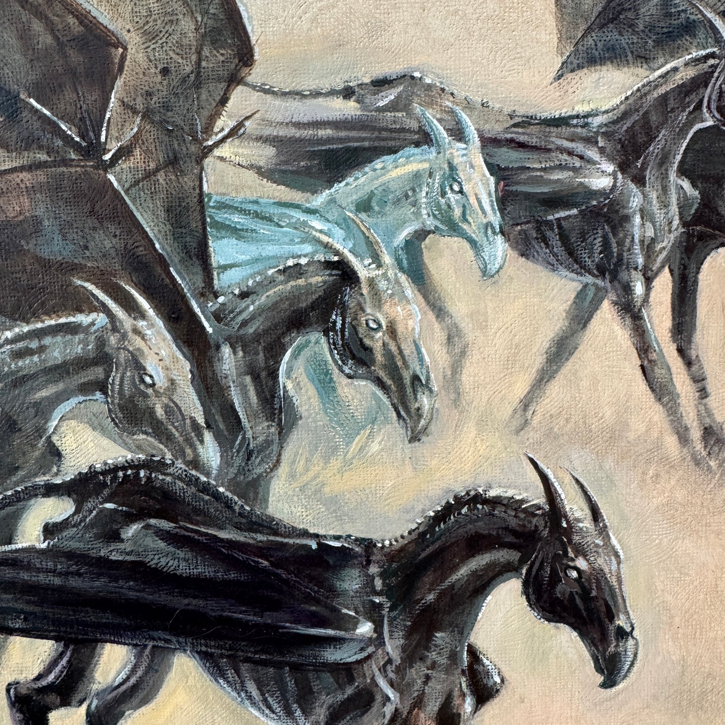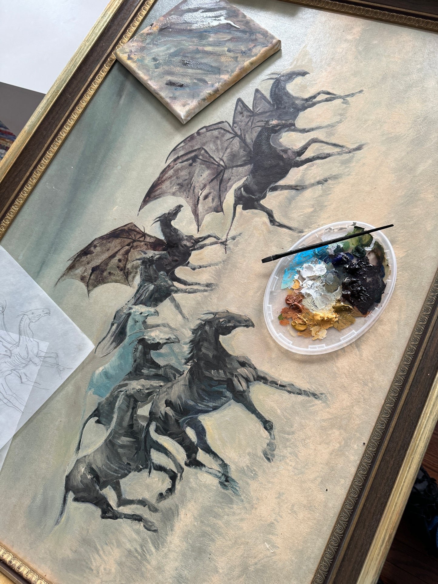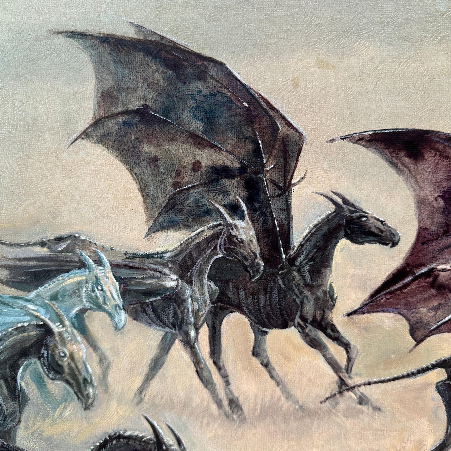 One of my favourite scenes in “The Order of the Phoenix” was how JK Rowling introduced the thestrals. The moment when Luna Lovegood said to Harry that she could see the thestrals, too, would have been so reassuring to someone who could not believe what creepy monstrosities they were seeing. The way Luna was so gentle and accepting towards them helped change the way Harry saw these misunderstood creatures. So with this altered painting, I wanted to share her view of thestrals, and imagine them in a world where they are perceived as gentle beasts, who love a good run through the grass and to feel the wind through their wings.
