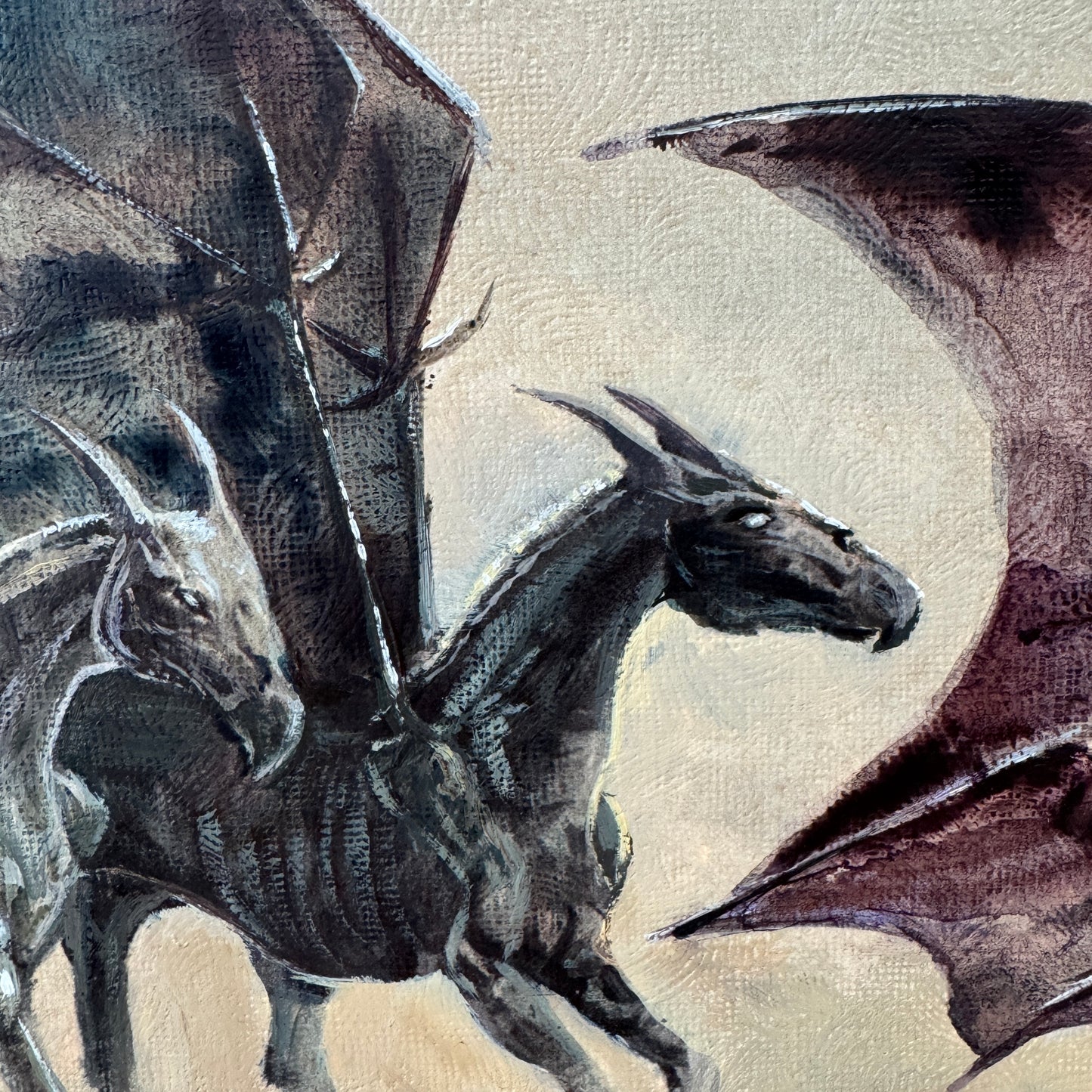 Original print quality : This print was produced c1960, and over the years it has slowly lost its vibrant colour due to sun and environmental damage. I decided to keep the original faded colours as it worked well with the ethereal feel of the thestrals. I cleaned and touched up parts where I felt it was necessary, but left left some scuffs and stains on the print as part of the vintage look.
