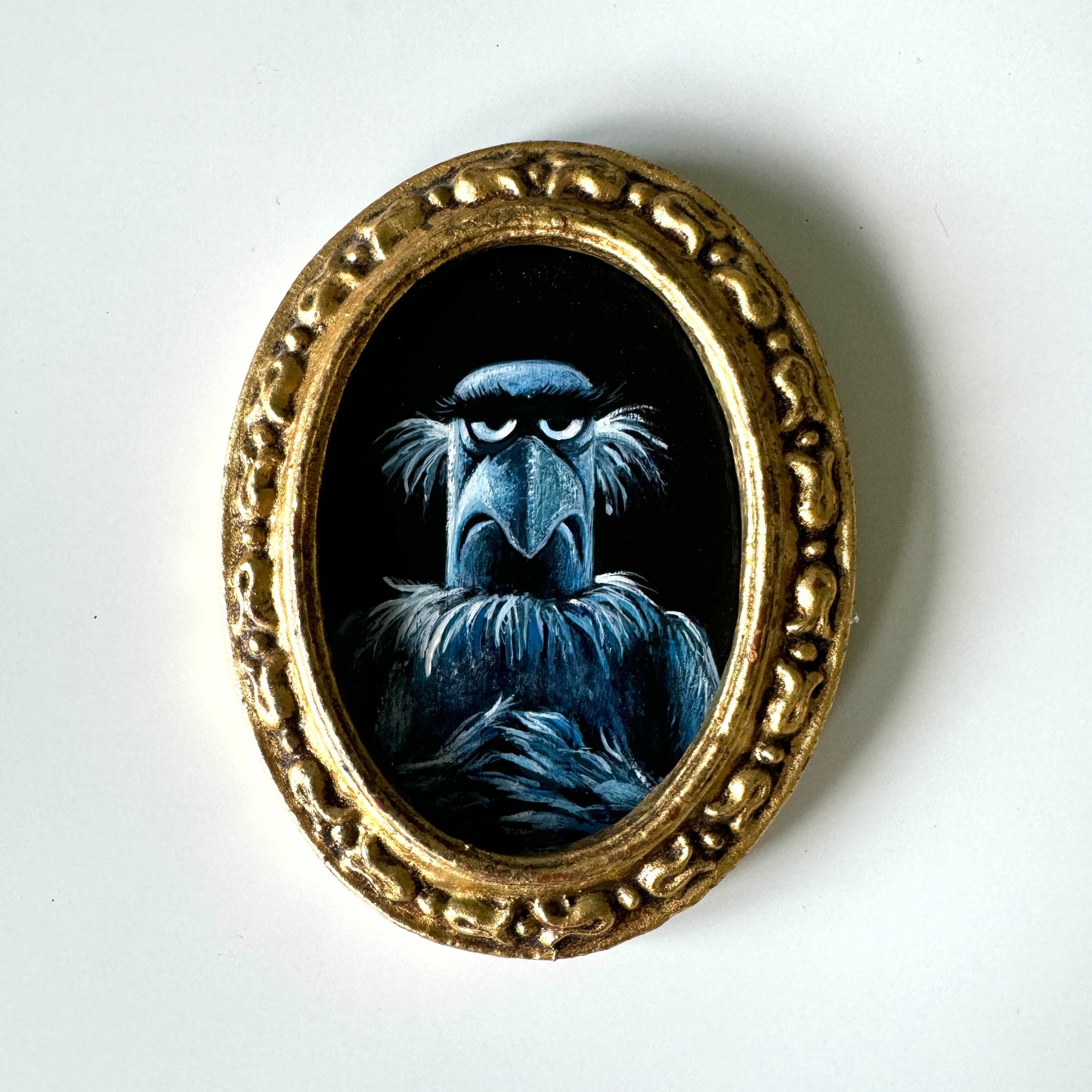 Miniature painting in acrylic on reclaimed wood in 9.5 x 12.5 cm vintage gold resin frame. Ready for wall display.