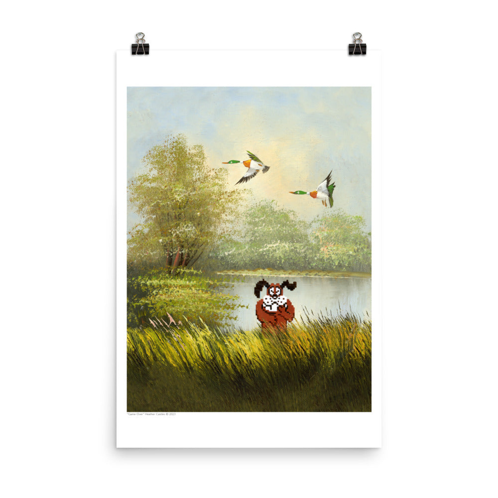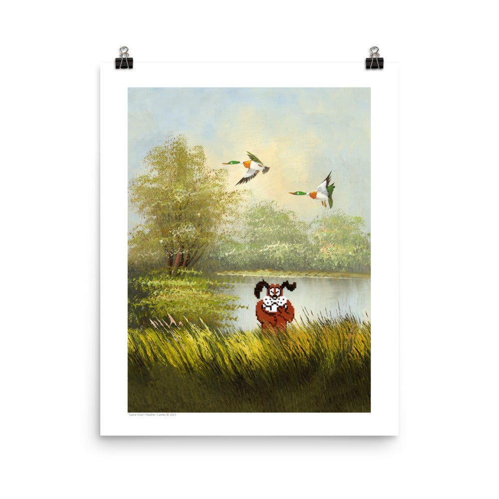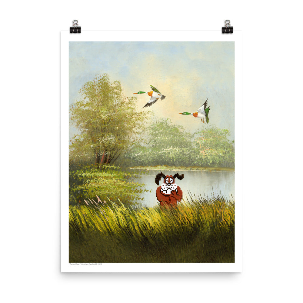 It was totally unnerving altering this vintage painting while the hunting dog snickered at me the entire time! If you grew up in the 80’s and played this classic video game, you’ll know the feeling… and maybe even remember the disappointment of the ducks flying away, followed by the humiliation of this cheeky dog mocking your defeat!