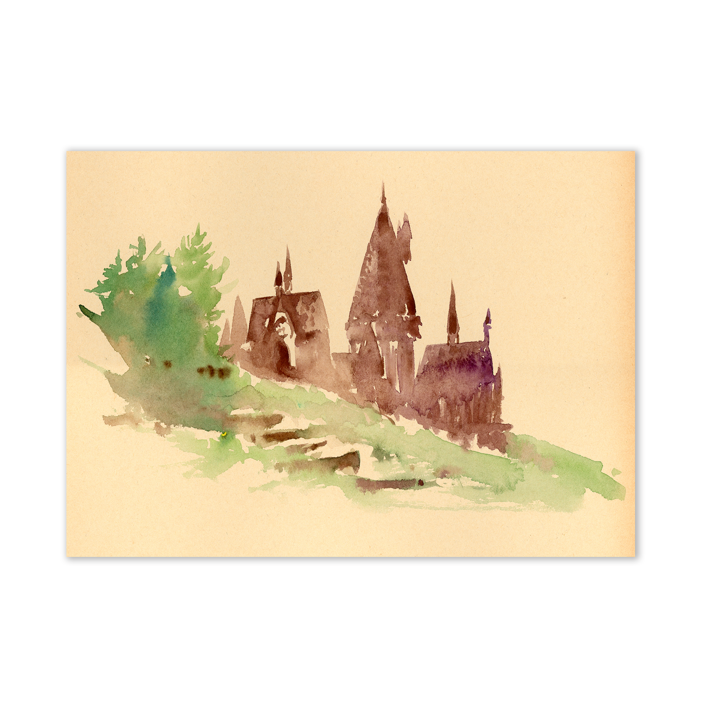 While creating my Altered Muggle Art collection, I enjoyed studying the magical world with watercolour paintings and pencil sketches. I had this vintage album with rough parchment like paper which I enjoyed painting on with watercolour and acrylic to study and practice the subject matter before painting the final pieces on vintage paintings. I'm not sure how old the album is, perhaps c1960... but it is old enough to have that old book smell so I felt like I was painting on something from Hogwarts library! In the end I had painted 16 original watercolour illustrations along the way, some of which I'm very fond of as illustrations in their own right.