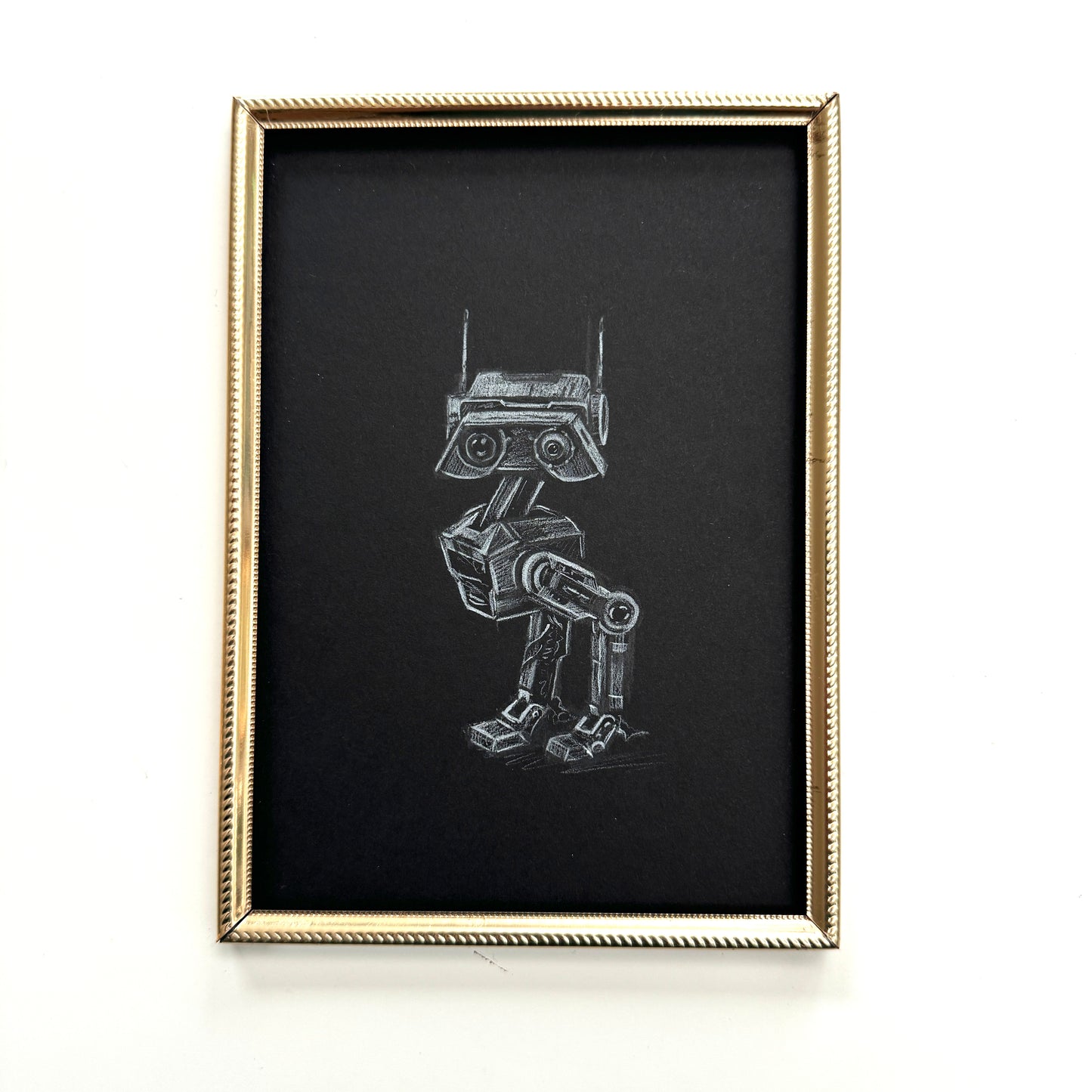 Sketch of BD-1, 6x8 white pencil & paint on black paper.
