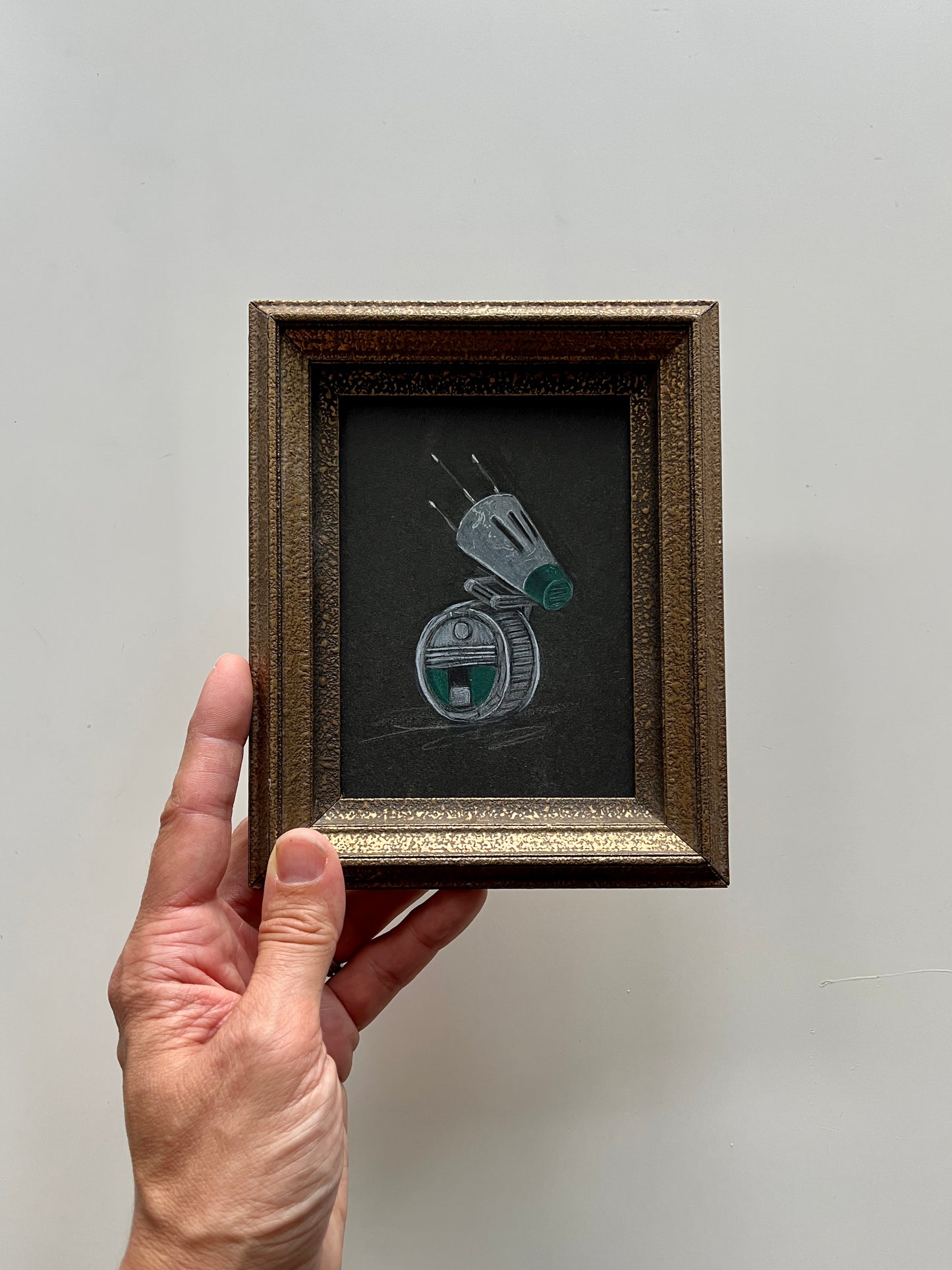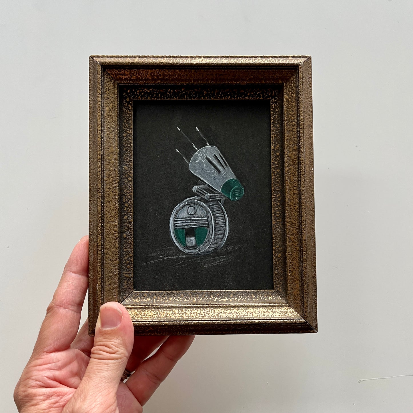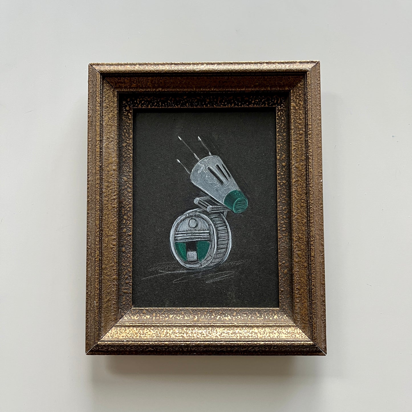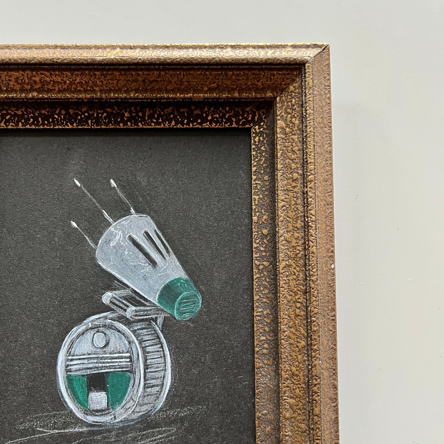 Portrait of a Droid : D-O, pencil drawing on antique paper, in vintage frame