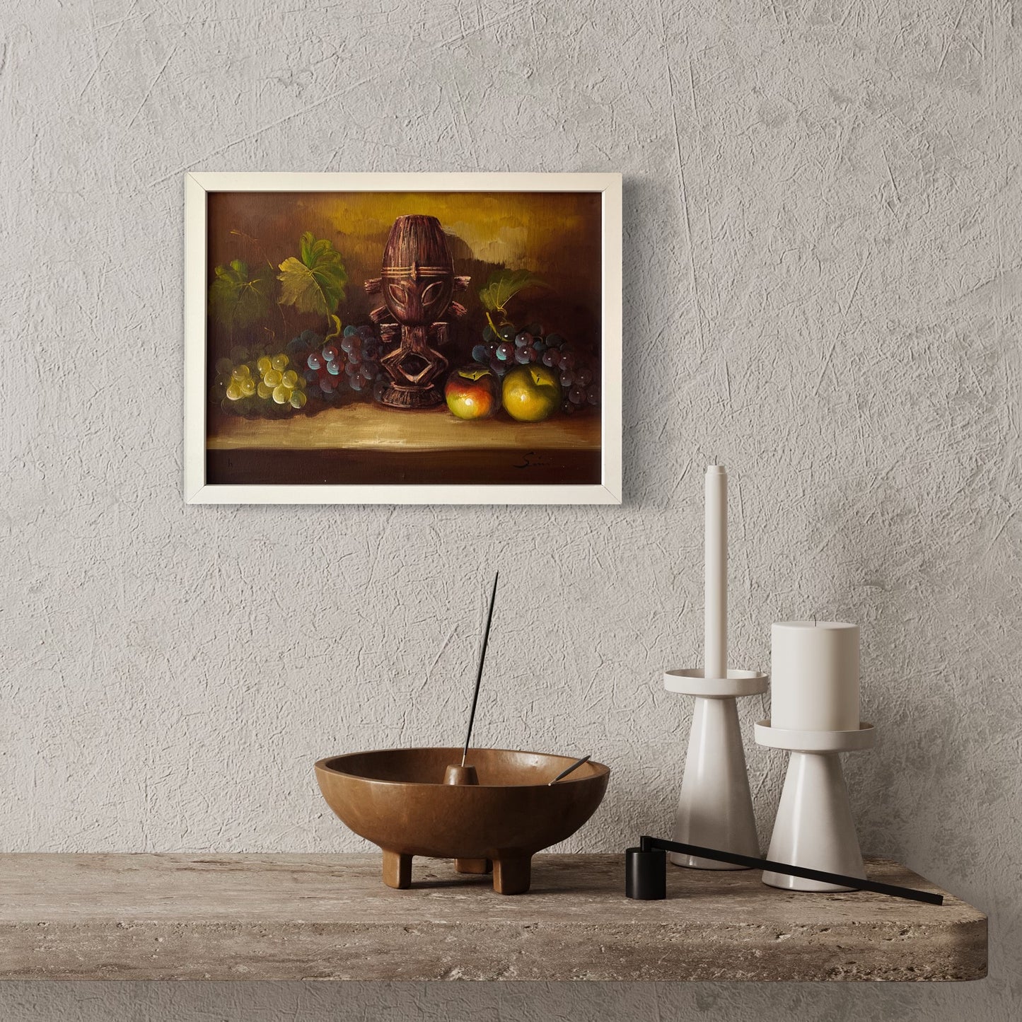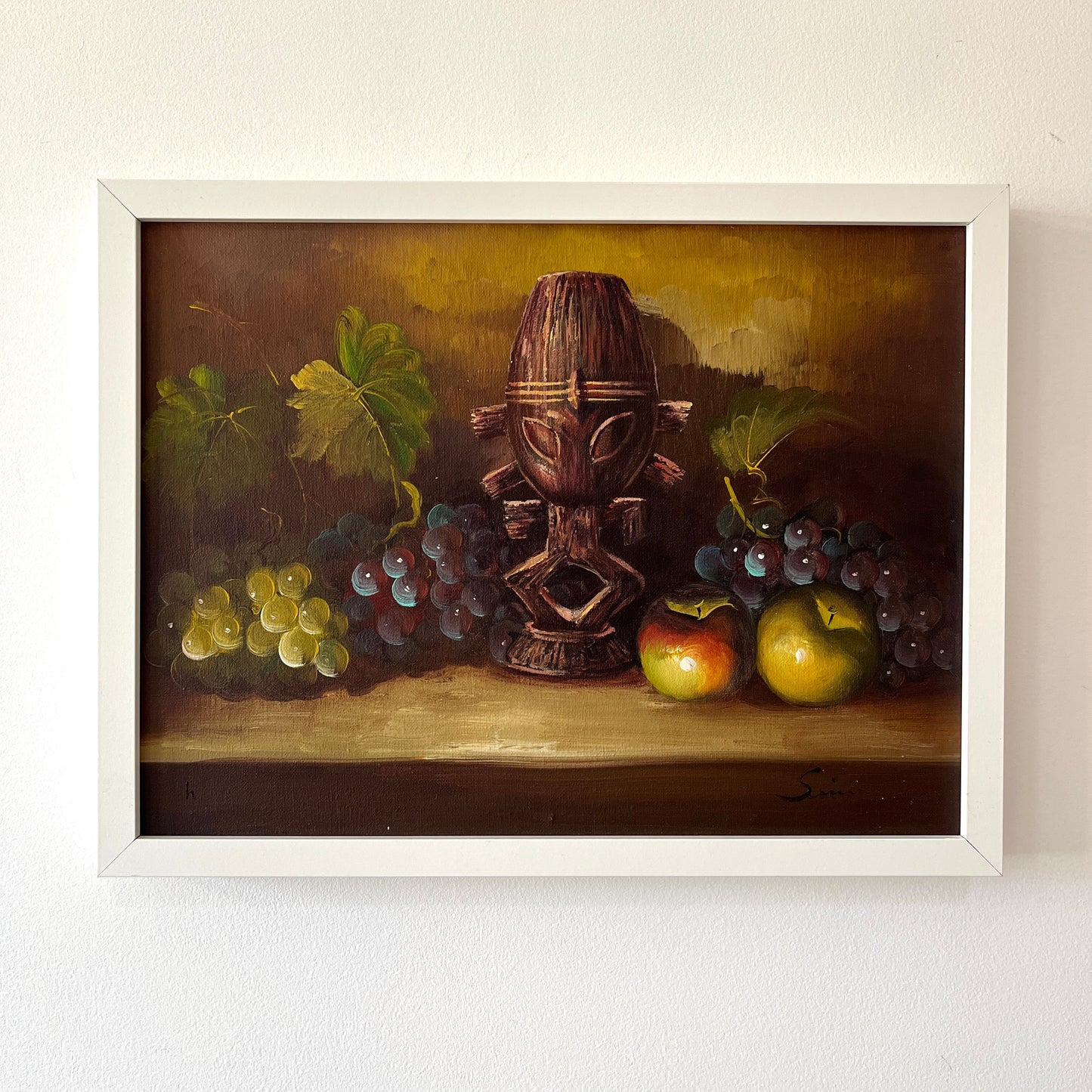 I like that this alteration gives this little painting a completely different vibe! I found it at a thrift store… it had been ripped out of its pretty frame and discarded in just its trim, nails poking out and all. Nothing sadder than art chucked away for its frame! After cleaning and altering it, I gave it a modern frame to make it feel young again.