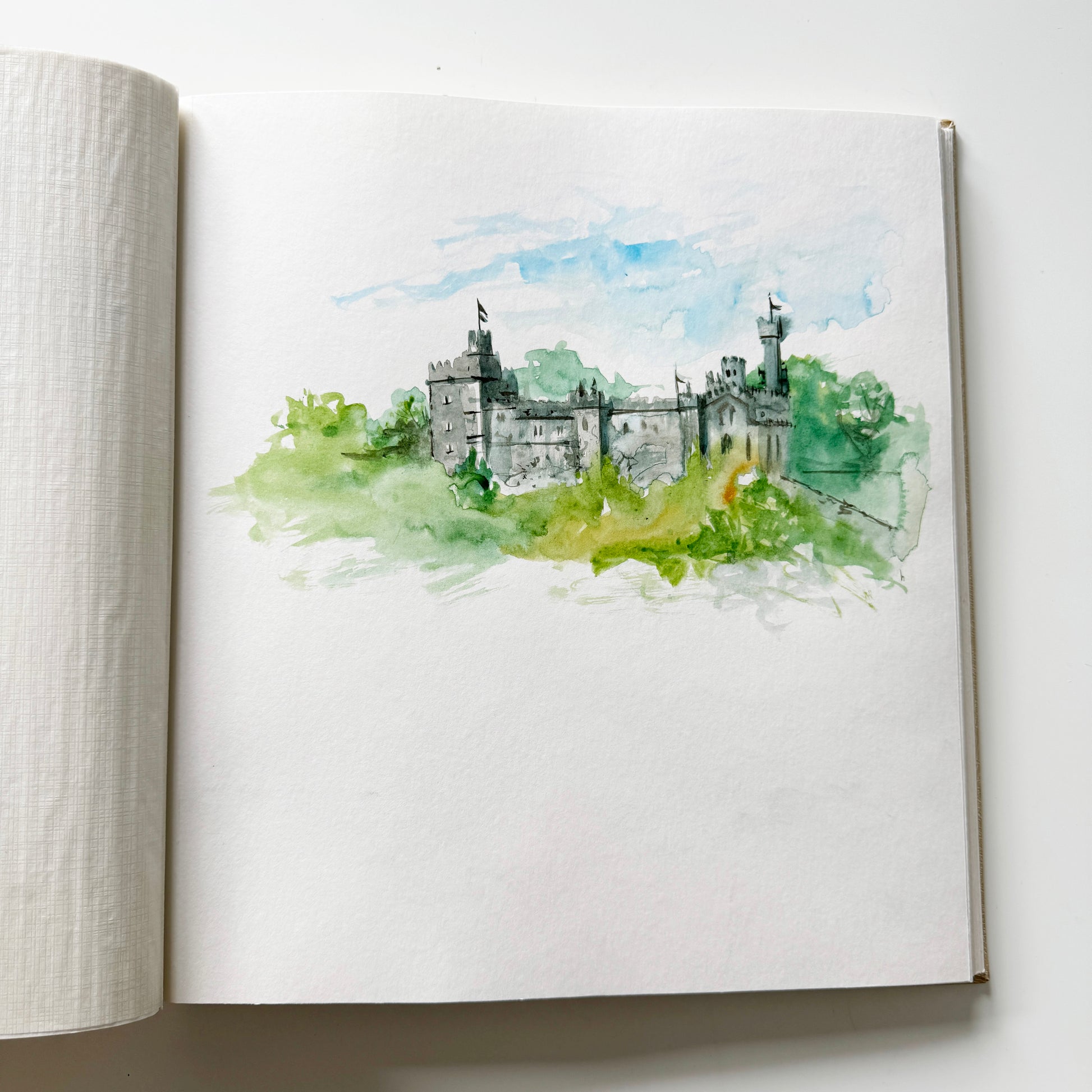 Before painting the alterations, I spent some time drawing and painting studies of my favourite elements from the film The Princess Bride. Humperdinck's castle was always the epitome of a fairytale castle to me, so felt like a trip back to my childhood to paint this watercolour study of it. The real life castle is Hadden Hall, in Derbyshire, England.