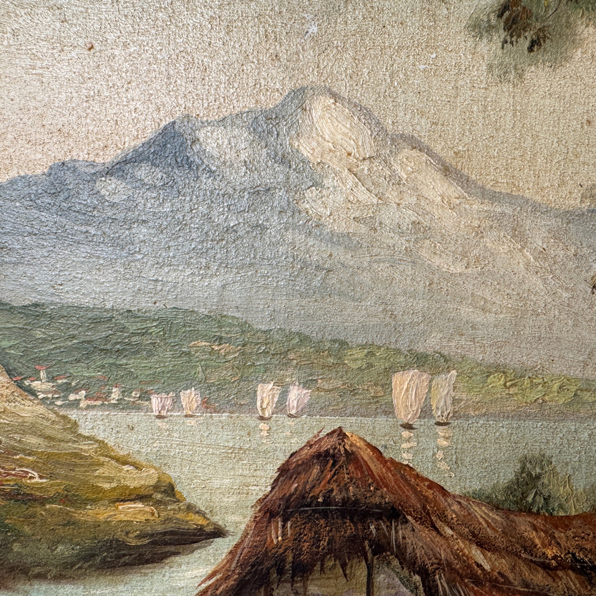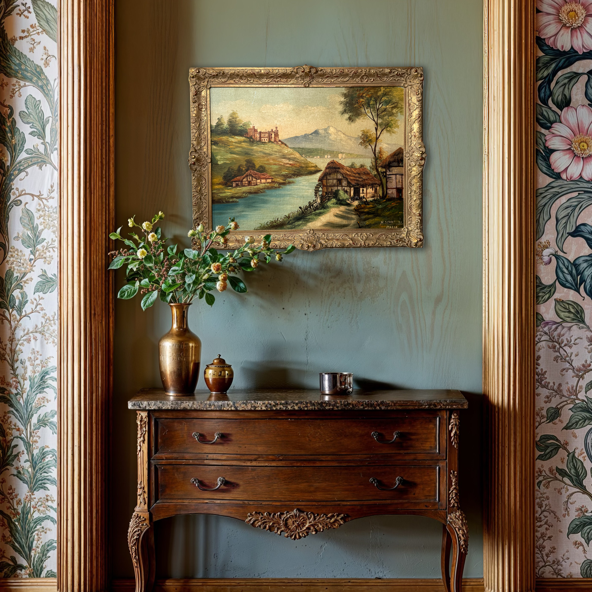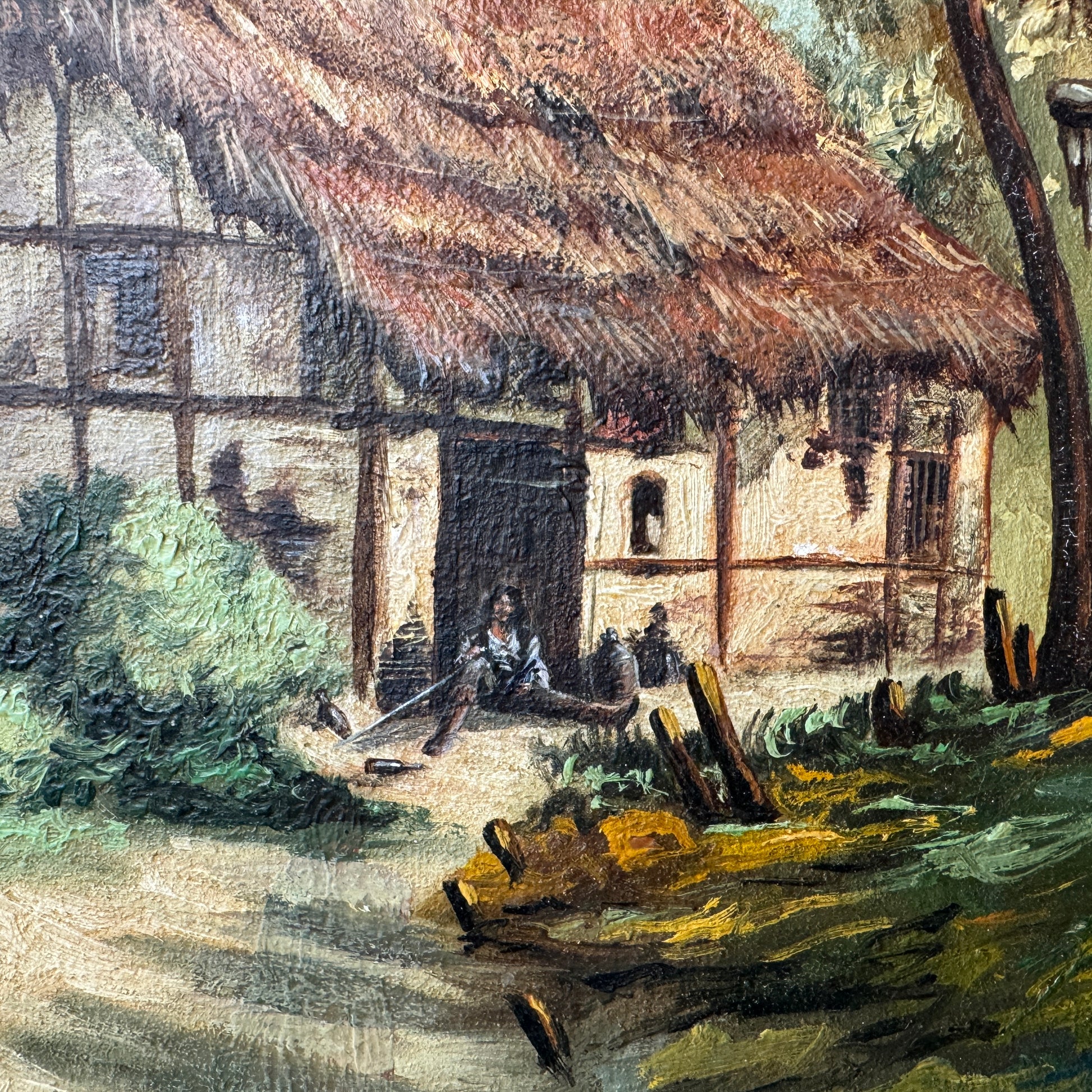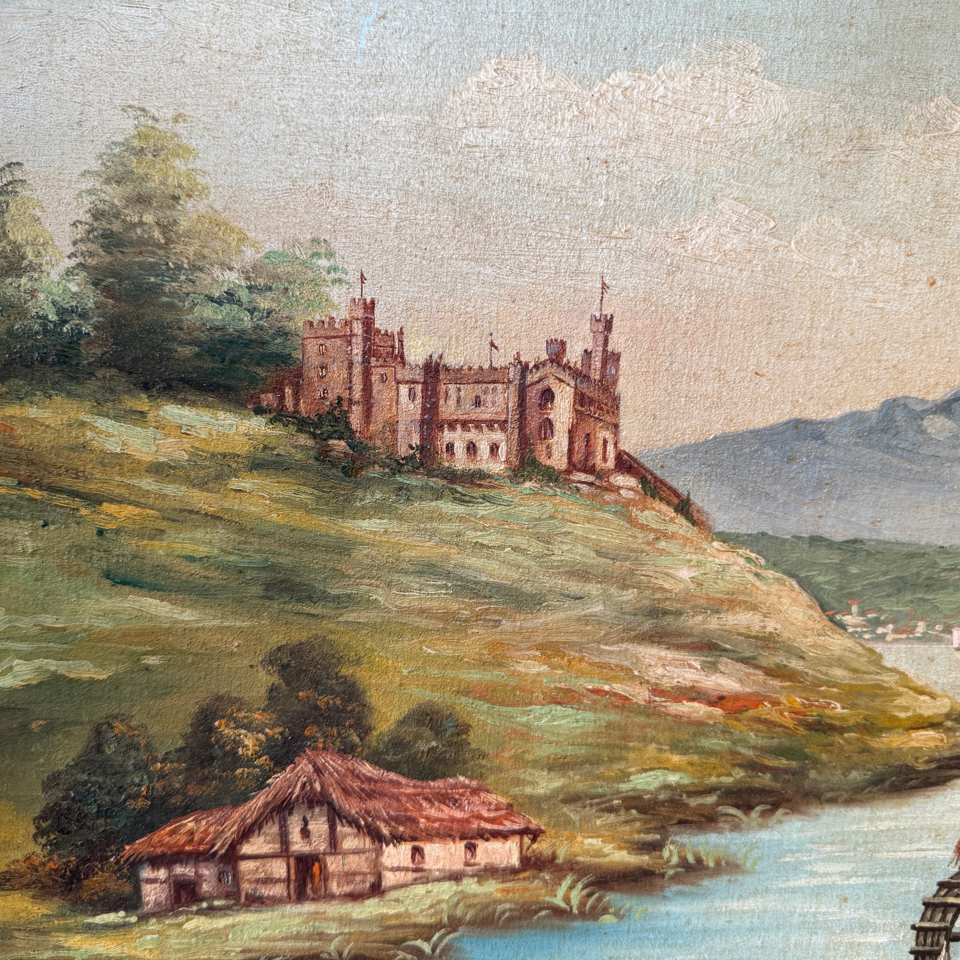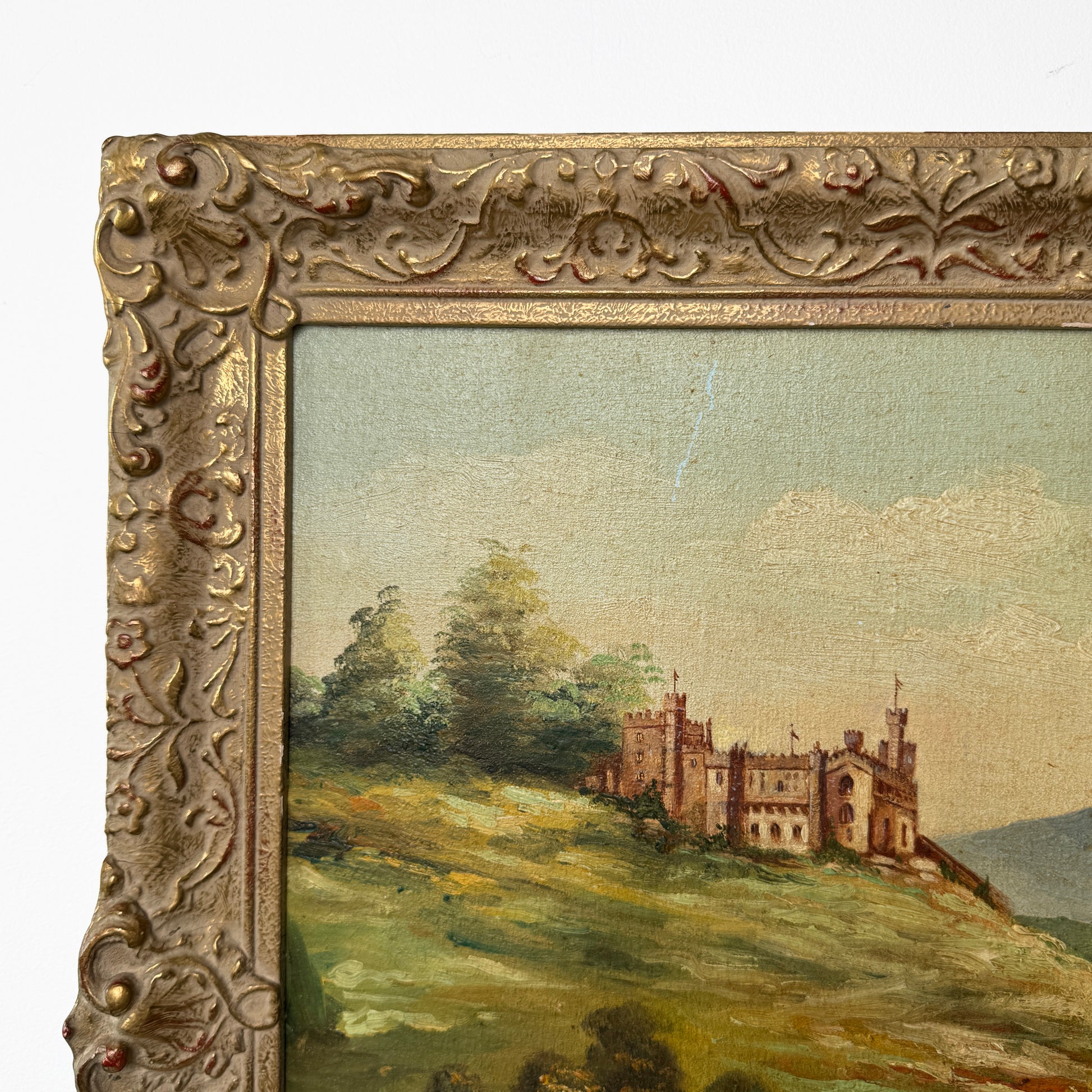 The original vintage painting was collected locally here in Ontario. The frame is so, so beautiful... aged, but beautiful. Lots of details in it. Very sturdy, especially with the art being on wood. It has an overall tarnished look to the painting... it has been thoroughly cleaned, this is just due to the age of the art. Which I think adds to the charm and the fairytale feel of it all.