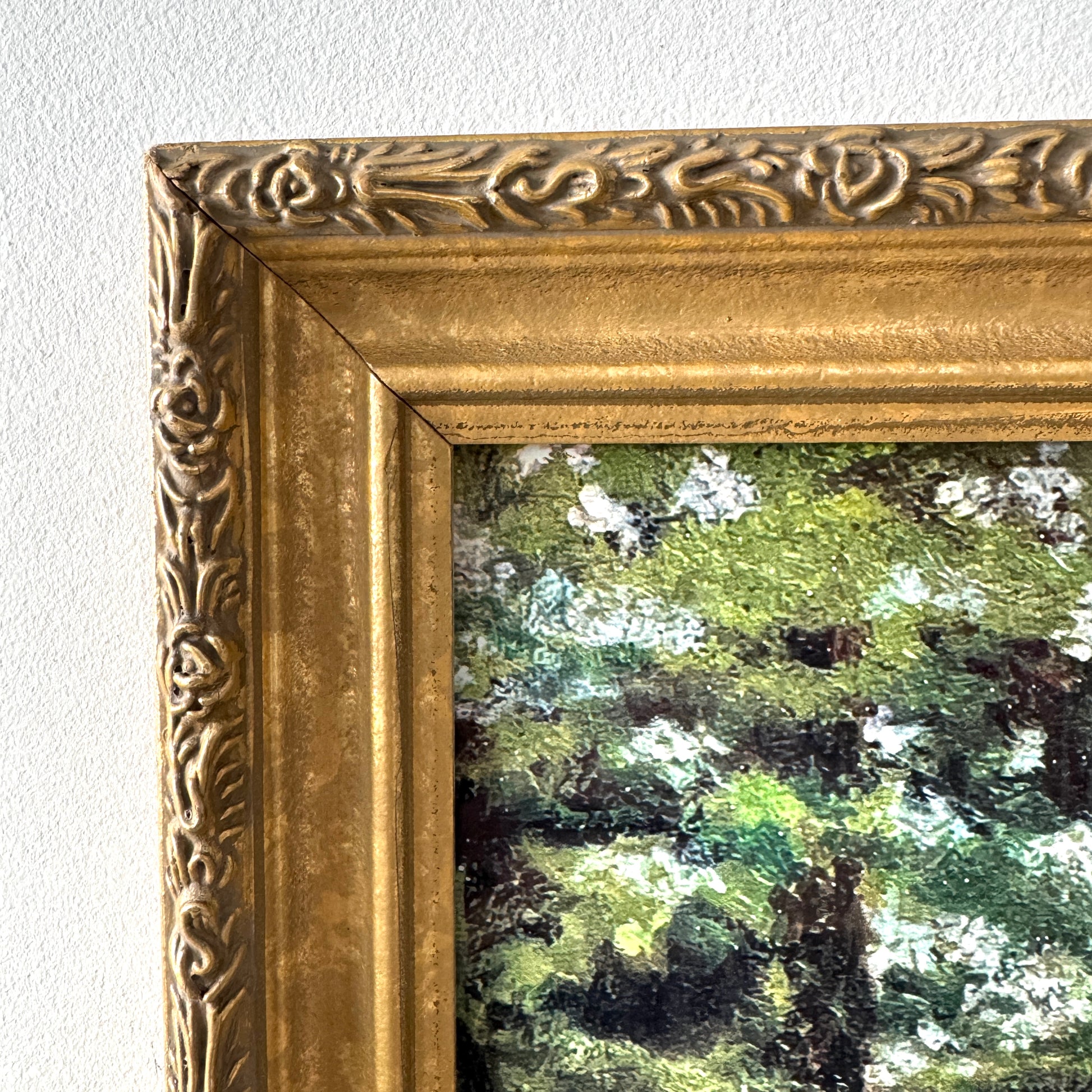 Frame details : Reclaimed wood frame with gold paint, very good quality with minor wear from age. Wall display.
