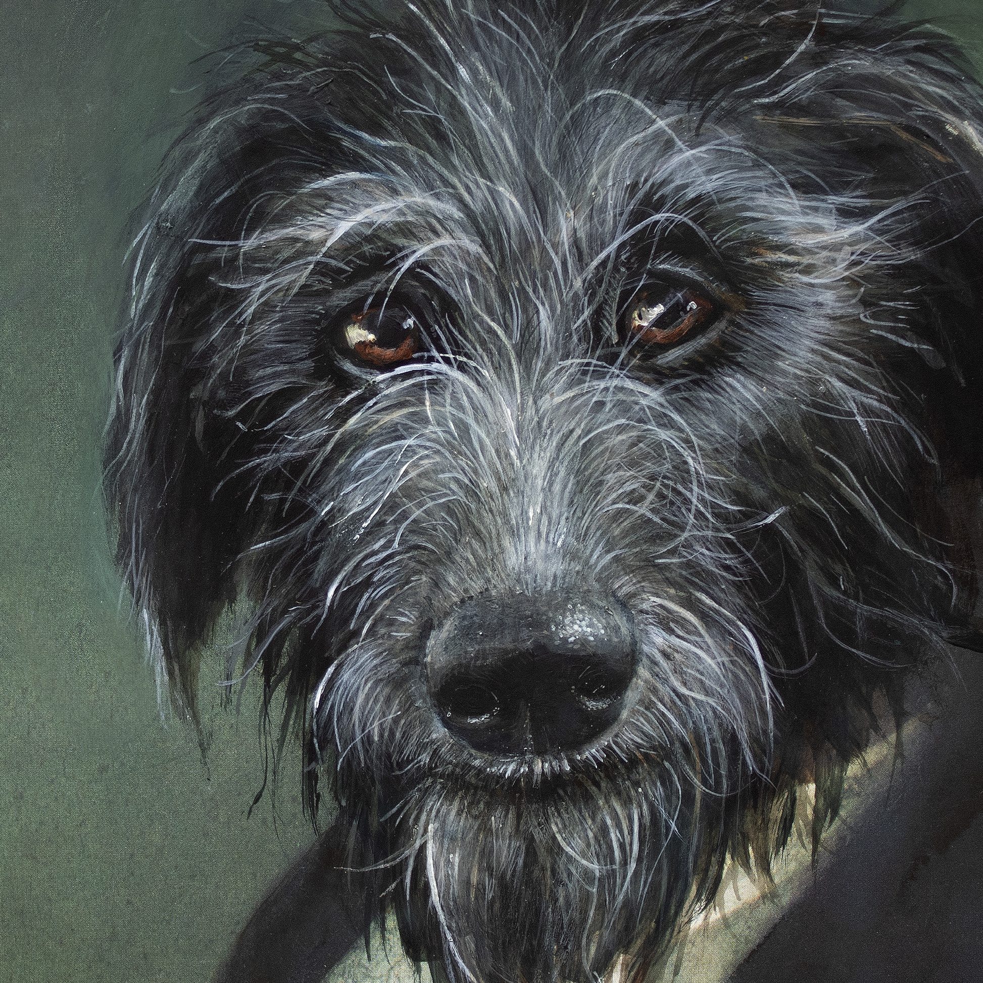 This portrait is of Sirius Black, transformed into a great black dog. I imagined how he would look if he had lived beyond the stories, hair greying but his eyes still kind.
