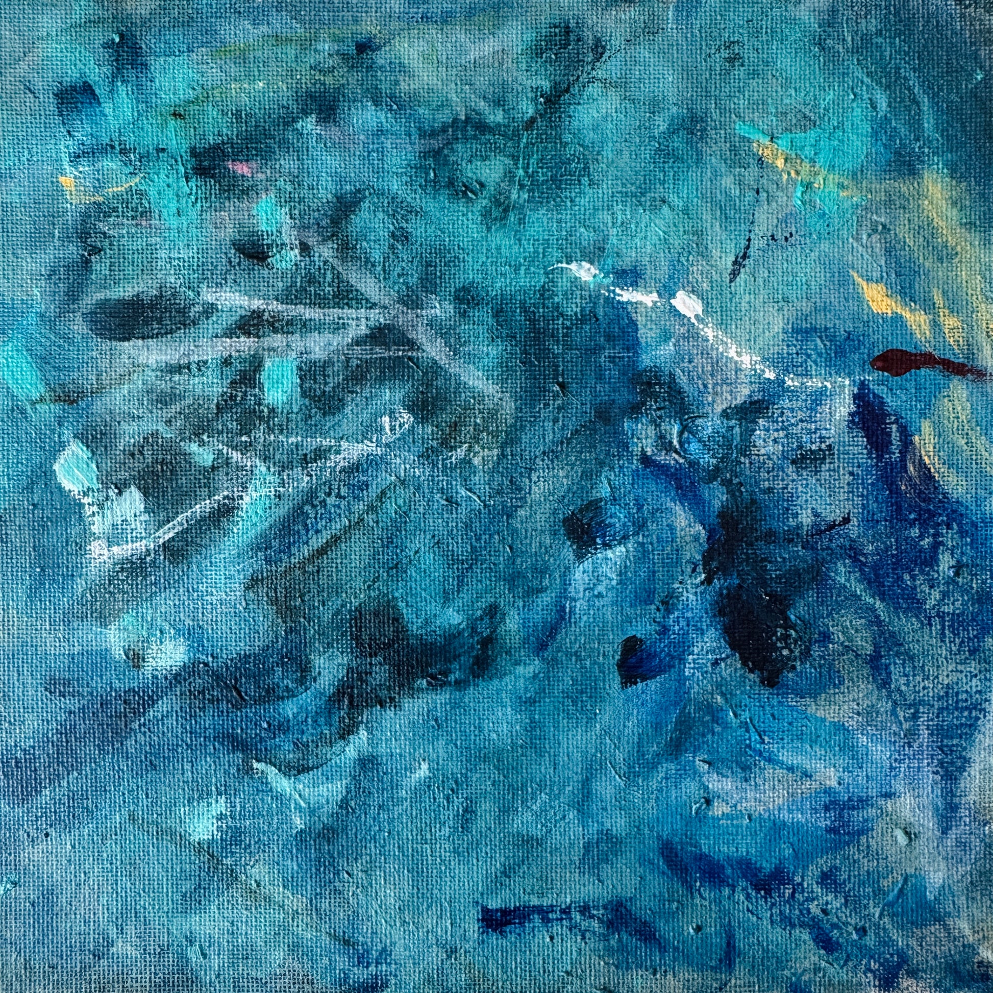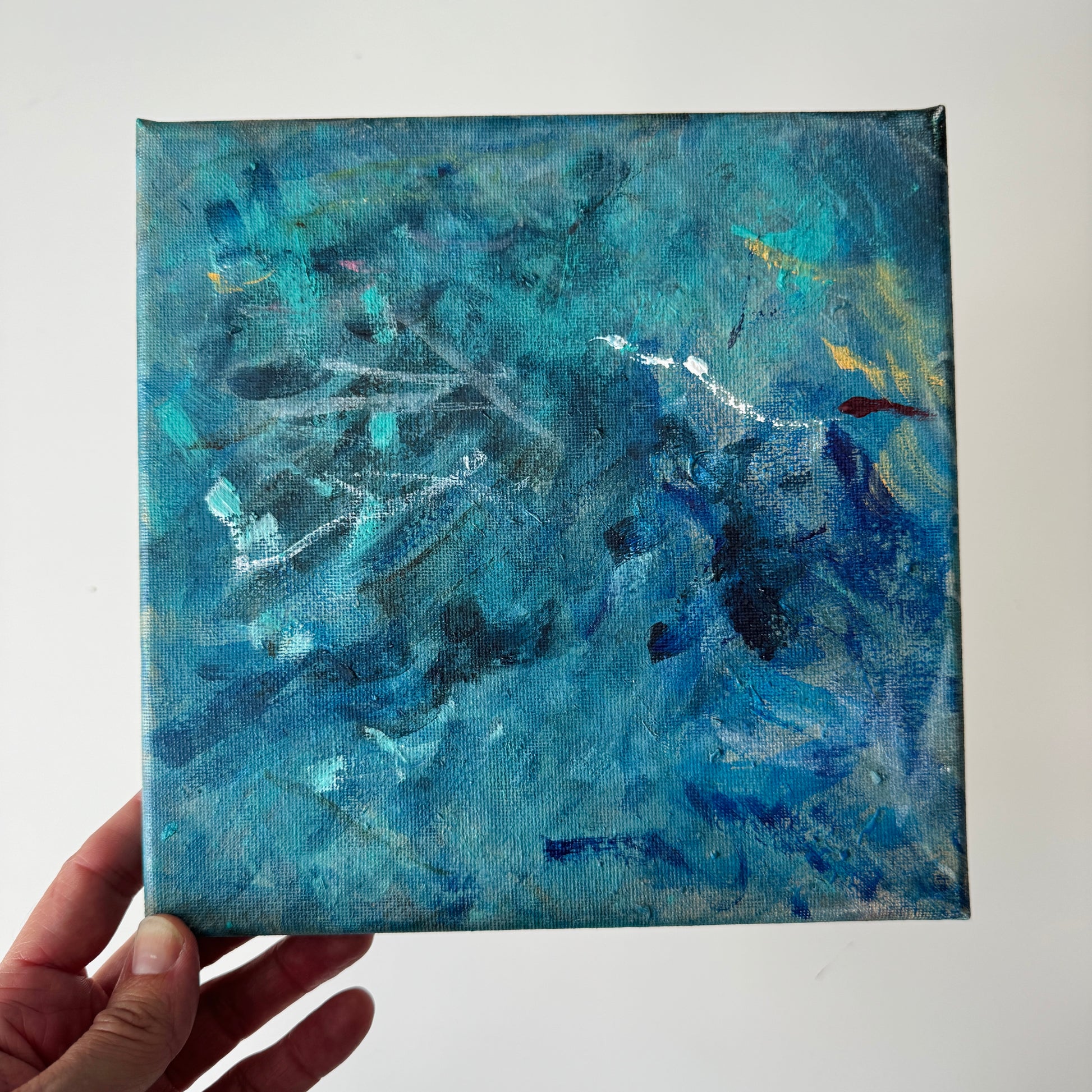 When I paint, I keep little canvases next to me so that I can brush off excess paint. As time goes by, the colours and textures build up in a pleasing way, till I like it enough to frame it and hang alongside the original art or prints!