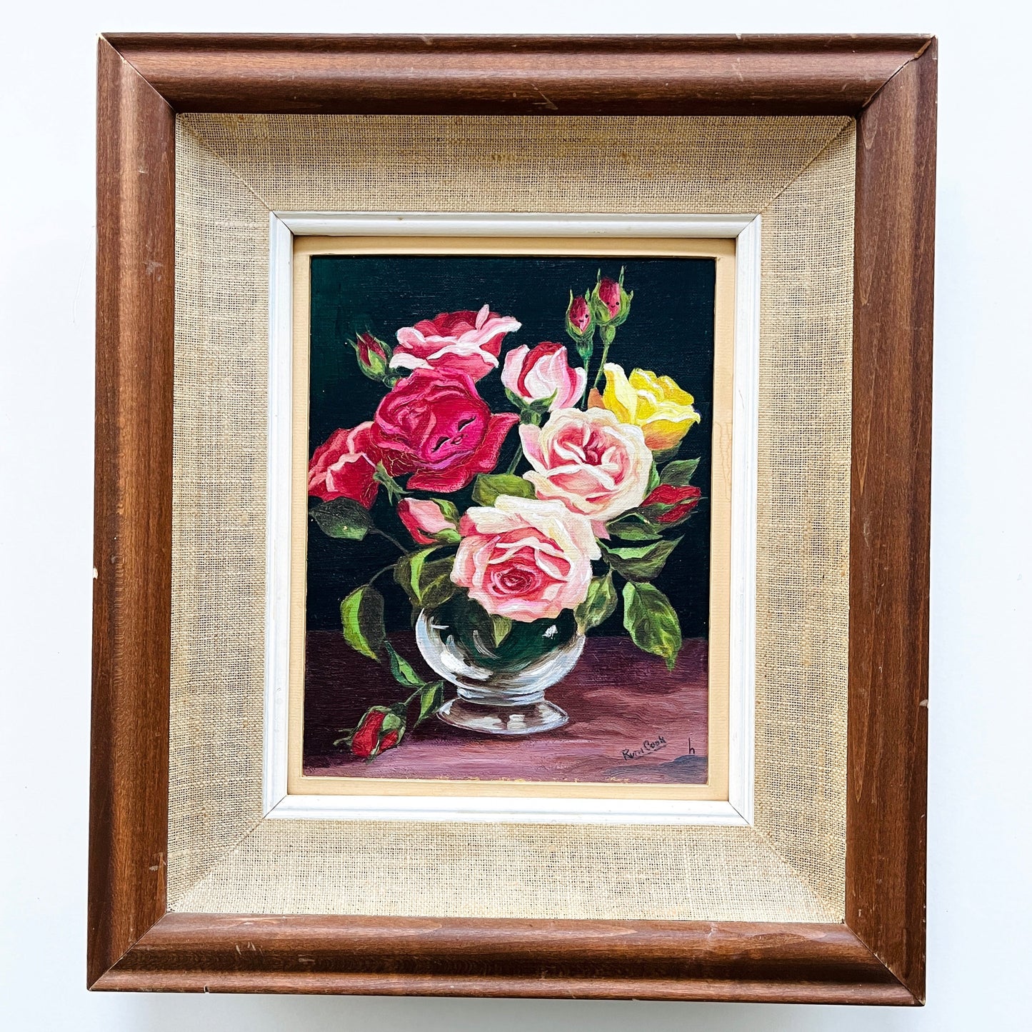 The style of these mid-century florals was very popular to the point that it began to be mass produced. Once an idea is mass produced, it loses its uniqueness and value… which is why paintings like these, which took time and effort to paint by hand, are being discarded. I really enjoy adding something fun to these vintage florals to make them unique again, and give them another chance to be appreciated.