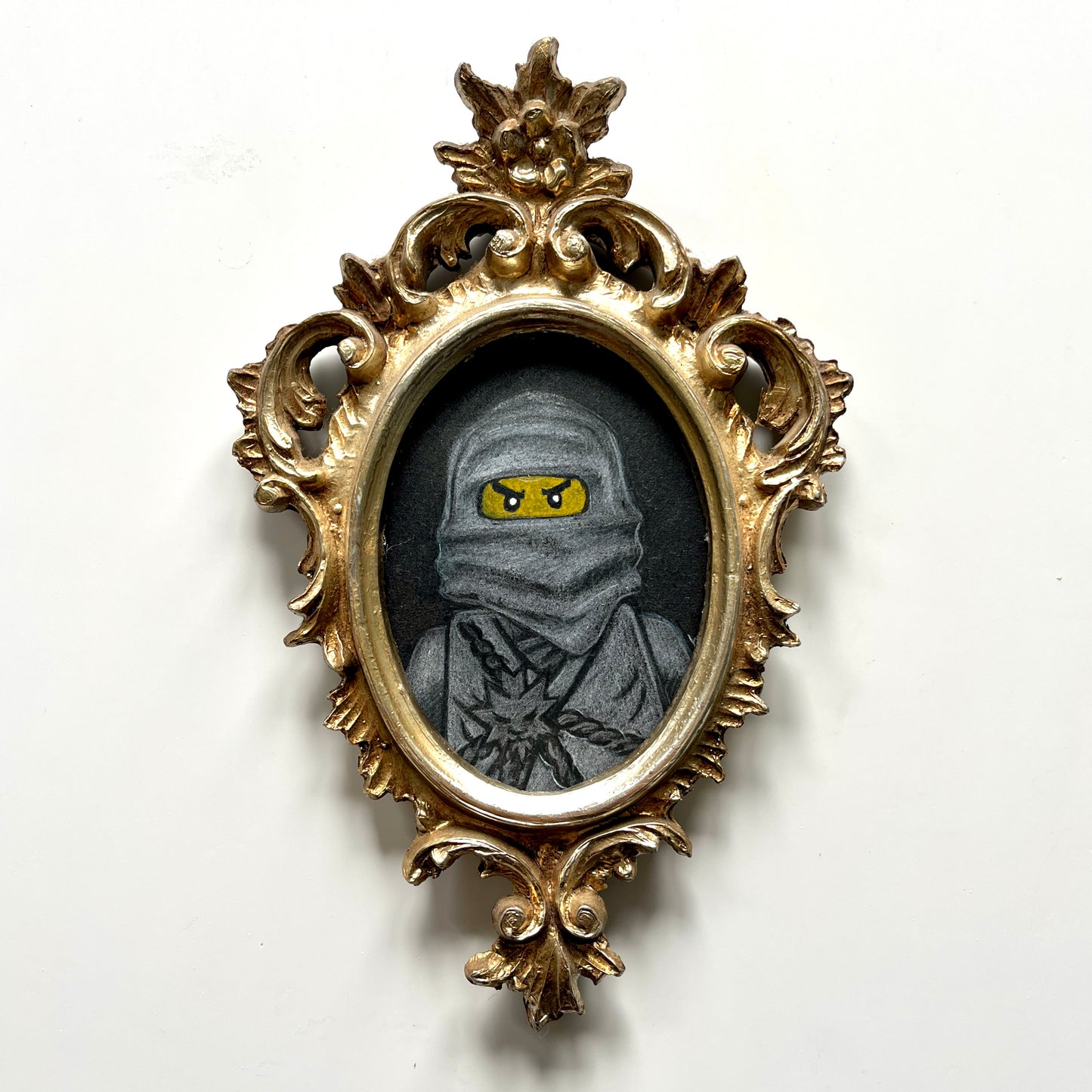 Portrait of a Droid : Nindroid, pencil drawing on antique paper, in vintage frame