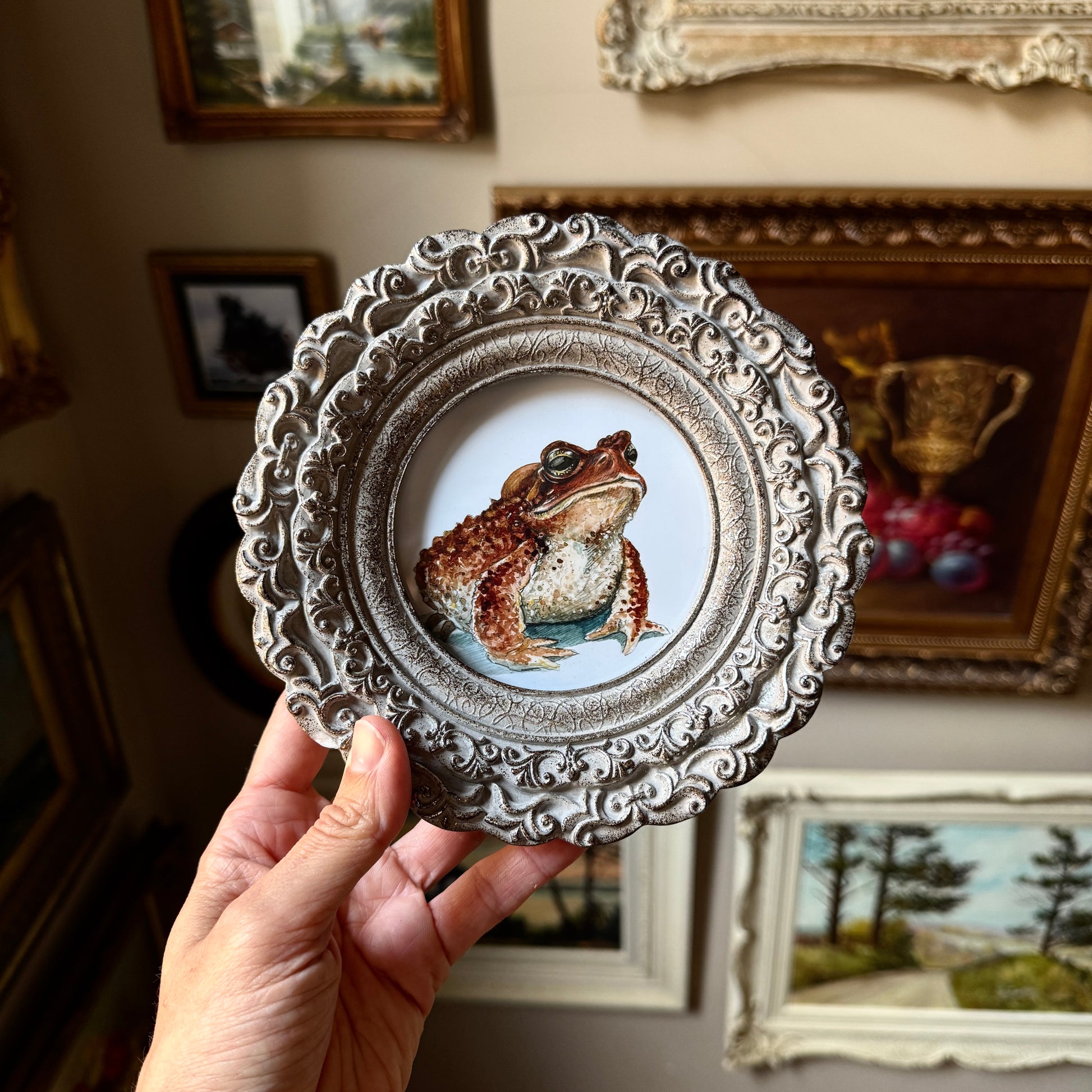 The model for this painting was my pet toad, Gimli, who lived in a beautiful terrarium and loved to greedily eat worms and crickets.